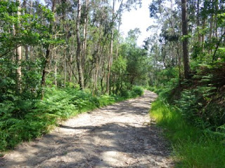 sumergimos en un ladera que va por el bosque paralela a la carretera, el Camino